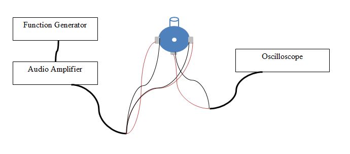 The standard setup for sonoluminescence is a spherical flask with piezo-electric transducers (PZTs) attached on opposite sides of the flask. The PZTs are excited by sound waves generated by a function generator and amplified by an audio amplifier. Another smaller PZT on the bottom of the flask acts as a microphone to monitor the response of the flask and the sound of the collapsing trapped bubble that was induced into the system. The response contains many high harmonics of the driving frequency. The signals picked up by the microphone can then be displayed upon an oscilloscope to document the response of the bubble. Resonance is displayed on the oscilloscope when the highest amplitude of peak to peak voltage exists.