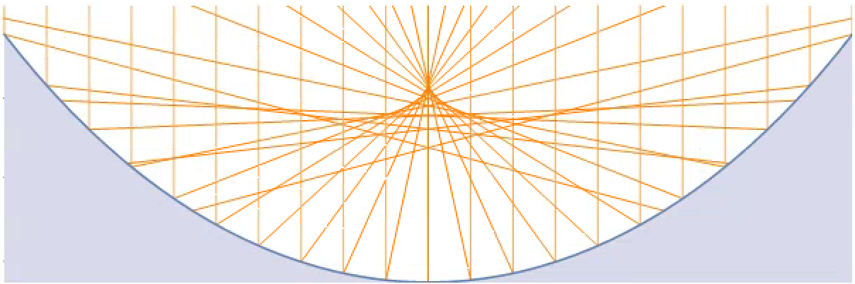 Ray trace of a reflective parabolic surface