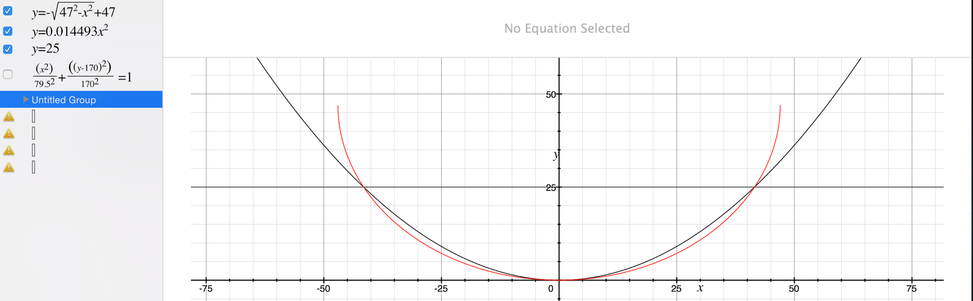 back at the deviation graph described earlier, a parabola and a circle are