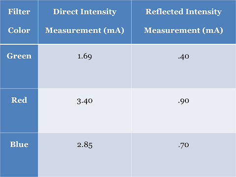 Research JournalMonday, 29 April 2013At this point, I have collected all of the experimental data for my project and will mainly be working on analyzing my results and writing my report. Although the original concept of converting the photodetector to a photometer did not necessarily go according to plan, Dr. Noé and I were able to gain an appreciation for photometry, as well as some meaningful qualitative data which (within reason) agrees with the theoretical power ratings for the light bulbs. Friday, 26 April 2013Testing Light BulbsToday, Dr. Noé and I took readings for the voltage generated by the light emitted from three different bulbs. A 100,000 Ohm resistor was placed across the photodetector, which was held 1 m away (horizontally) from each light source. We also placed a medium green filter in front of the photodetector for half of the measurements in an attempt to imitate the spectral response of the human eye. The results we obtained are recorded in the table below.