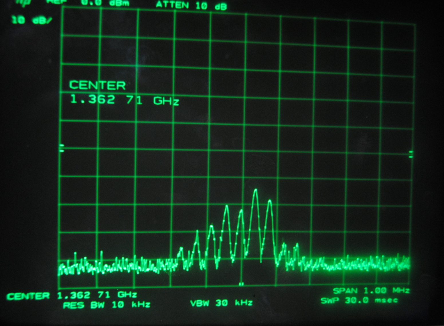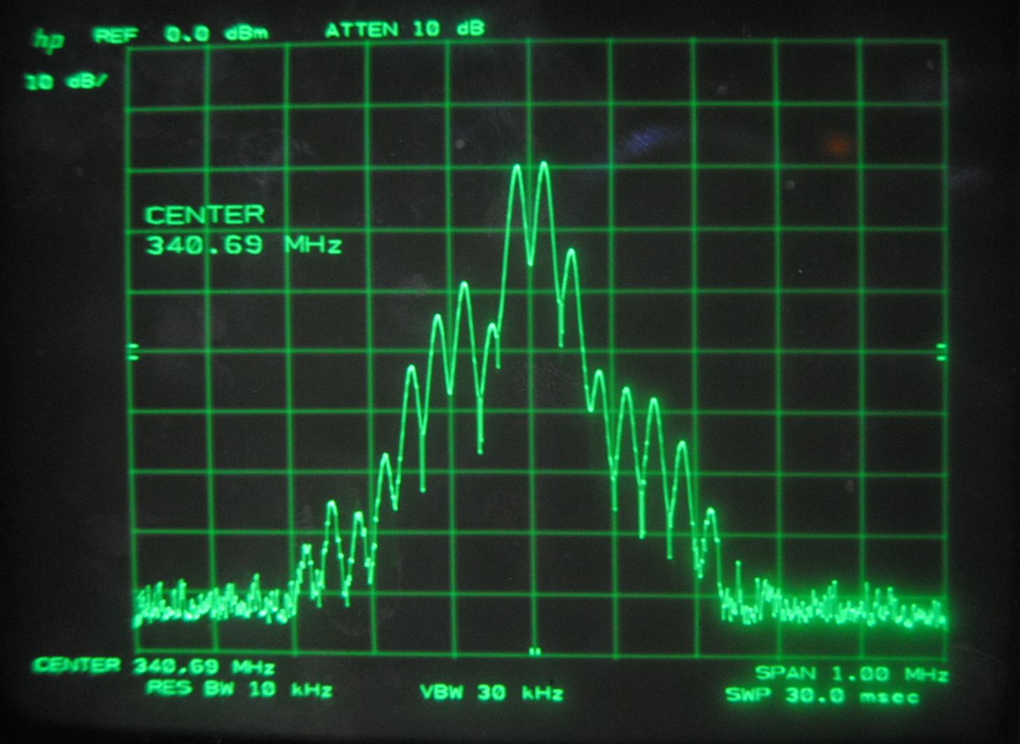 oscillations to change we decided to look at the same data on a spectrum analyzer(HP