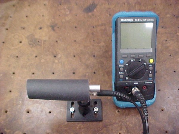 This is a drawing of my setup. The laser is a polarized Melles Griot that is 62 cm long. The prisms are arranged as shown in the drawing held together by two rubber bands. A piece of nickel foil (approximately 12μm thick) is placed between the two prisms at one end, creating a triangular air gap. The prisms are mounted on a vernier turntable (see pictures below) that can measure angles to within five minutes of a degree. The turntable is screwed on to a translation stage that is equipped with a micrometer screw. The prism array can therefore be rotated and translated. A photodetector is connected to a multimeter to measure the intensity of the transmitted light. The turntable is equipped with a vernier. To read the angle, look where the bottom "0" line is in relation to the upper scale. Then, find where a tick on the bottom lines up with a tick on the top, that is the minutes measurement of the degree. For example, in the above picture, the angle is 301° and 30 minutes, or 301.5° . Data Analysis:First the setup was rotated at an angle before the critical angle so that FTIR was not achieved. The setup now acts as a Fabry-Perot etalon and multiple reflections are observed. Data was taken on the intensity of the transmitted light as a function of the translated distance of the setup. As the air gap widens, we see that the transmitted intensity follows a pattern. Compared to the model, we see that the actual data shows a fanning as the critical points become progressively farther from each other. This is likely due to fact that the prisms are not perfectly flat. This data was taken with the laser horizontally polarized and vertically polarized.