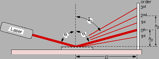 Specular reflection of the laser beam from a steel ruler gives a zero order image. In Fig.1 the distance h0 and D determine