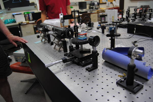 The beginning groups that finished first circled back to the conference room to see the demos they and missed. I made sure the whole event ran smoothly and took plenty of pictures! Overall, the tour ended up lasting about an hour and a half (3:30pm - 5pm), and I think that it worked well that we had it on the day before the symposium since everyone had basically finished their abstracts, posters, and research. Tomorrow we’re planning to have a nice farewell lunch at the Simons Center Cafe with LTC students, parents, and mentors. For future reference - the number to call for reservations at the Cafe is 2-2881. Friday 8 August 2014I spent most of the morning discussing posters with Ikaasa and Jonathan and reviewing them with John and Marty. I also talked a little bit with the group about responsibilities for the the upcoming lab tour - they’ll each be doing 5-10 mini demonstrations about their projects or other related demo. They’ll need to start off with some good background about the physics involved, since many of these Simons students are working in other fields and may not have a good understanding of optics. Then the idea is to try to involve the students - explain things to them, but not lecture them - give them the opportunity to learn by participating. Last year we did parallel sessions, and that worked pretty well. But this summer John suggested we try doing it in series, with the laser light show as the grand finale, so I was trying to figure out the best way to organize that. I worked through a plan for the students will move through the lab from Jonathan, to Andrea, to Alex, to Ikaasa, then finally to Libby for the light show - while groups are waiting to enter the LTC, they’ll do general demos with John in the conference room. We tidied up the lab a little bit in the afternoon - but the bulk of the clean-up will have to be done Monday morning. We’ve reached the end of the summer crunch time! The last week is always a little hectic - everyone’s trying to finish last minute things with their projects while doing abstracts and posters, and they should also be keeping up with their web journals and lab notebooks. We’ve got the Simons students’ lab tour Monday afternoon and their poster symposium is Tuesday morning. Thursday 7 August 2014Rachel gave a great informational talk on spacial light modulators this morning - she started with a little background on liquid crystals, different types of SLMs (reflective vs. transmissive, VAN PAN and TN), their applications, advantages versus disadvantages, how to control them (either by means of an extended monitor with a Paint, Powerpoint, or Photoshop mask, or using a separate monitor with a Matlab or Mathematica generated mask), and how to encode a phase mask and optimize it with a blazed grating instead of a binary one (and the SLM sensitive area should be completely filled by the laser to avoid extra, undesired diffraction). Libby, Ikaasa, John and I had a nice lunch at the Simons Center Cafe with Rachel and Niyati Desai (another Simons student working in the physics department) and discussed the Stony Brook Honors College versus the WISE program and choosing colleges in general. In the afternoon, we worked with Jonathan for a little to help him model the theoretical expansion of a Gaussian whose beam waist starts at the same narrow width as his Airy beam to drive home the fact that the Airy beam is non-diffracting. I also talked with Ikaasa more about her project and the math behind it. I seems that those articles I found at the end of the day yesterday aren’t directly relevant, and that the math Ikaasa did for rotating a half wave plate on top of another one doesn’t turn it into a quarter wave plate. We also discussed modeling the birefringence versus wavelength, and she was able to plot this for one layer of tape using her 10-layer data. Wednesday 6 August 2014In the morning I helped individual students with their questions about the research update presentations and the symposium posters. I also worked with Ikaasa - she’s trying to figure out if the theory actually works as far as turning two half wave plates (one rotated with respect to the other) into a quarter wave plate. Using an angle between them that she had calculated with Jones calculus, she got some interesting but unexplainable experimental results, so we’ll need to look more into the physics of what’s happening… Our pizza lunch meeting this week featured Rachel Sampson, a Stony Brook University rising junior. I worked with her last summer in the LTC, so it was great seeing her again! She spent her summer doing an RE at the University of Rochester in the Boyd group - her project was titled: “Sorting Laguerre-Gaussian Radial Modes Via Projective Measurement,” which was related to her work here in the LTC. After her talk and discussion, we had our students give their research update presentations (with a little extra background than last so that Rachel could be caught up to speed on their projects). Rachel’s abstract and student research update talk titles can be found here. We ordered more cylindrical lenses from Thorlabs for Jonathan’s project after he found out it was possible to have the shop do a gold reflective coating over them to make cylindrical mirrors - we got one LK1487L1 - uncoated plano-concave with a -400 mm focal length, and one LJ1363L1 - uncoated plank-convex with a 400 mm focal length. Throughout the afternoon, I worked more with Ikaasa and Marty too to try to figure out the physics behind her project. Marty’s not quite sure why her the “half-wave plate” maxima are flattening out when she rotates one stack of tape on top of the other. At the end of the day, I found a few articles that I didn’t get a change to really go through yet but they seem relevant - the first is Achromatic combinations of birefringent plates (Pancharatnam 1955). This article (part 1 of 2) talks about using two half-wave plates and a quarte