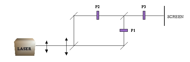But if we now put the light in the combined beam through a plane polarizing filter at 45 deg between horizontal and vertical so that we have