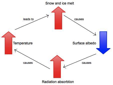 Why is Snow WhiteDifferent colors arise because the electrons within an object vibrate a certain amount in response to energy based on the frequency of the energy. Objects absorb certain frequencies and reflect others. If the particle does not absorb a certain light frequency, the particle can re-emit the photon. The photon will continue to pass through to the next particle. If the light travels all the way through the material, the material will appear clear. In most solid materials, particles reemit most light out of the matrials and the object appears opaque. Ice is not transparent; it is translucent. Ice is translucent because light photons don't pass through the material in a direct path; the material's particles alters the direction of the light. This occurs because the distance between some atoms are approximately the height of the light wavelengths; this causes the path to be altered and the direction to be changed. In snow, a bunch of ice crystals arranged together, when a photon enters snow, it is "bounced" around and then reflected out. The same thing happens to all frequencies. All of the visible light frequencies combine to make white. This is why snow is white even though ice crystals are clear. Friday, March 1st, 2013 - Seventh MeetingWe discussed project ideas and learned some basic Linux programming. Right now, snow/albedo and Chladni patterns are the two topics I am most interested in exploring and possibly doing a project on. I became interested in snow/albedo when we measured the intensity of the direct versus reflected from the snow sunlight. Doing a project related to snow presents a problem because it is already March and the snow will soon be gone. This means that I'll have to be extra creative when thinking up my project. I've been interested in Chladni patterns since I saw a Youtube video about them in tenth grade; my only reservation is that I would really like to do a project which is more directly related to optics, so that I can broaden my scope of knowledge. Dr. Noé suggested typing *your topic of interest* + demonstration into Google to find project ideas. He also suggested looking at the American Journal of Physics to get inspiration for our projects. Albedo- ratio of upwelling radiant energy relative to the down-welling irradiance Fresh snow has a high albedo, typically eighty to ninety percent reflection. It is also the largest single component of the cryosphere, covering an average of 46 million square kilometers or eleven percent of the Earths total surface area annually (Earths total surface area is 510 square kilometers). Snow is responsible for the majority of solar radiation reflection. These factors are a big reason for why snow is a very important part of the global energy budget. In contrast, surfaces such as trees, plants, and soil typically only reflect ten to thirty percent of incident light. Snow albedo follows a positive feedback mechanism. As snow ages and melts, a percentage of the snow becomes ice. This reduces the snows albedo, increasing the snows solar radiation absorption, which further ages and melts the snow causing a positive feedback mechanism.