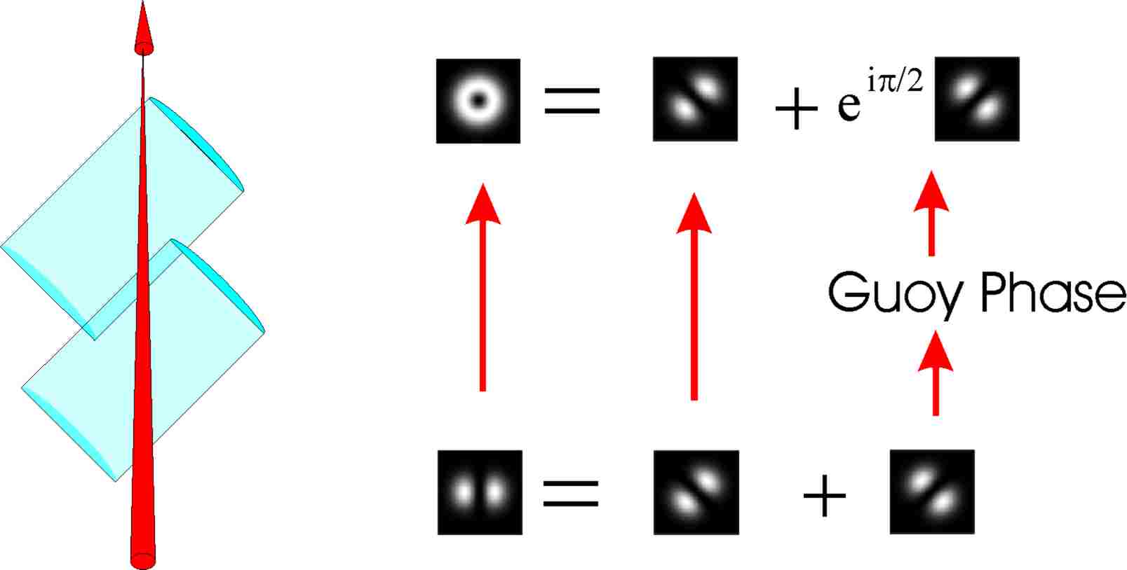 The field distribution in the HG mode HG1,0 rotated 45o or 135º relative to the x-axis ( without the propagation factor ) is equivalent to the sum ( or difference ) of two HG 0,1 and HG1,0 modes,