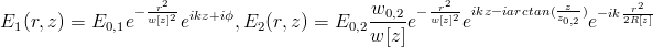 VISUALIZING THE GOUY PHASE OF A LASER BEAMThomas Videbaek Laser Teaching Center, Department of Physics and Astronomy Stony Brook University What I have been investigating is the interference pattern between a collimated beam and a focused beam. One of the things that I find interesting about this is a term that appears in the wave equation for a Gaussian beam, the Gouy phase, can be seen in an interesting way. The reason I got interested in this topic is that I am fascinated by the way that light behaves as a wave and how the wavefronts of light act. I remember that I used to love watching water waves move along after a splash was made, which is similar to the way that light waves propagate through materials. I remember asking Dr. Noe questions about Bessel beams and how the wavefront of a beam could be changed. After about a week Dr. Noe sent me a paper about how a single lens could be used to visualize the Gouy phase of a laser beam. I was interested by this because there are many interesting facets about how the wavefront changes as it propagates passed its minimum waist. From the paper I decided to make a classic setup to achieve this type of visualization and then replicate similar results with a double lens system. Introduction In this report, I will introduce a new setup that can be used, not only for teaching students the basics of Gaussian optics[1],[2], but also to help in the profiling of lasers. Also I will review the setup and properties of both the Mach-Zehnder and single lens interferometer. I feel that this type of setup is useful for teaching students because it helps to explain all aspects of the Gaussian electric field equation in visual terms. On top of that the ease of setup and adjustment for this setup tends to increase the ability for it to be used as an instructional laboratory experiment. In regards to the use of this new setup in profiling laser, it seems to provide accurate results that are reproducible and effective for providing checks against other, more standard, profiling methods. The single lens setup allows for a collimated and focused beam to become collinear due to the internal reflection of the light in the lens[1]. The benefit of this type of setup as an interferometer is that it provides a system that is prone to less error than a classic interferometer. Namely these areas occur in vibrations of the different components, causing the difference in path of the two beams to diminish greatly. This single, or primary, lens is placed in a diverging beam in such a way that the primary exiting beam is collimated. The double reflections inside the primary lens cause a secondary beam, of greatly diminished intensity, to exit with the collimated beam. Since the two beams exit the primary lens at the same point, it is a simply procedure to make them nearly collinear; this allows for nearly perfect viewing of the interference between them. With the setup described above the incident diverging beam is created by placing an initial lens that tailors the beam to have a specific diameter and divergence at the primary lens. The thing about this initial lens is that it should be placed within the Rayleigh range of the laser. Once outside of the Rayleigh range the laser has a constant divergence, which can then be used as the initial beam for the primary laser. When a lens is placed outside the Rayleigh range it requires a different focal length every distance away from the minimum waist of the laser. This allows for a simpler setup since the only optical element required is a large focal length lens placed at a location such that the beam becomes collimated. The same effect occurs as above and provides the same measurements of the wavefront. Overview of Gaussian Beam Theory In this section we will briefly look over the theory on Gaussian beams. The following equation is a solution to the paraxial wave equation[3]: ![]() I define w0 to be the radius of the beam when the curvature of the beam is a plane wave. This means that the waist is at the point where z=0. Everywhere else the radius of the beam is given by: ![]() ![]() ![]() ![]() To analyze what the Gaussian equation does it is simpler to consider three separate parts of the equation: the amplitude factor, the longitudinal phase factor, and the radial phase factor. The amplitude factor is the non-complex portion of the equation. This is the part of the equation squared is the intensity that is measured. The longitudinal phase factor is just a plane wave from the ikz term with a slight correction to push the on-axis part of the wavefront in front or behind of the plane wave. This correction factor is called the Gouy phase term and contributes a total of &pi over all of z. Lastly, the radial phase factor is what changes the wavefront from being planar at the waist to having a minimum curvature at z0 to becoming a spherical wave outside of the Rayleigh range. One last important note about this simple Gaussian beams is that they remain Gaussian beams, but with different waist sizes, as they pass through radially-symmetric optical elements. Mach-Zehnder Method The classical way of viewing the wavefront of a focused Gaussian beam is to setup a Mach-Zehnder interferometer with a lens in one arm (Fig. 1). This allows for there to be a collimated and focused beam to be collinear in the output beam of the interferometer. ![]() To see how this occurs the intensity equation must be derived. Finding the interference pattern is rather simple: just add the two electric fields and multiple by the sums complex conjugate. The top arm creates a collimated beam, which we will assume to be a plane wave, and the bottom arm creates a focused beam. The equations for these two electric fields are then: ![]() ![]() One other important detail is the relative intensity between the focused beam and collimated beam. This comes into account when choosing the focal length lens to put in the interferometer, because the focal length directly dete