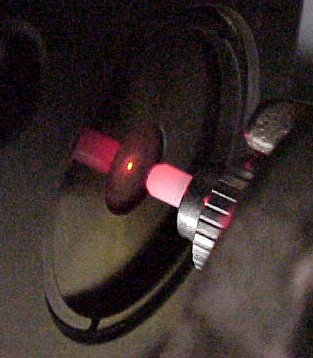 focus the light into the fiber optic cable. The light emerges at the other end of the