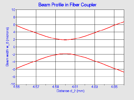fiber. For the blue line, L=47 mm, w=4.23 mm, NA=0.090. For the red line,