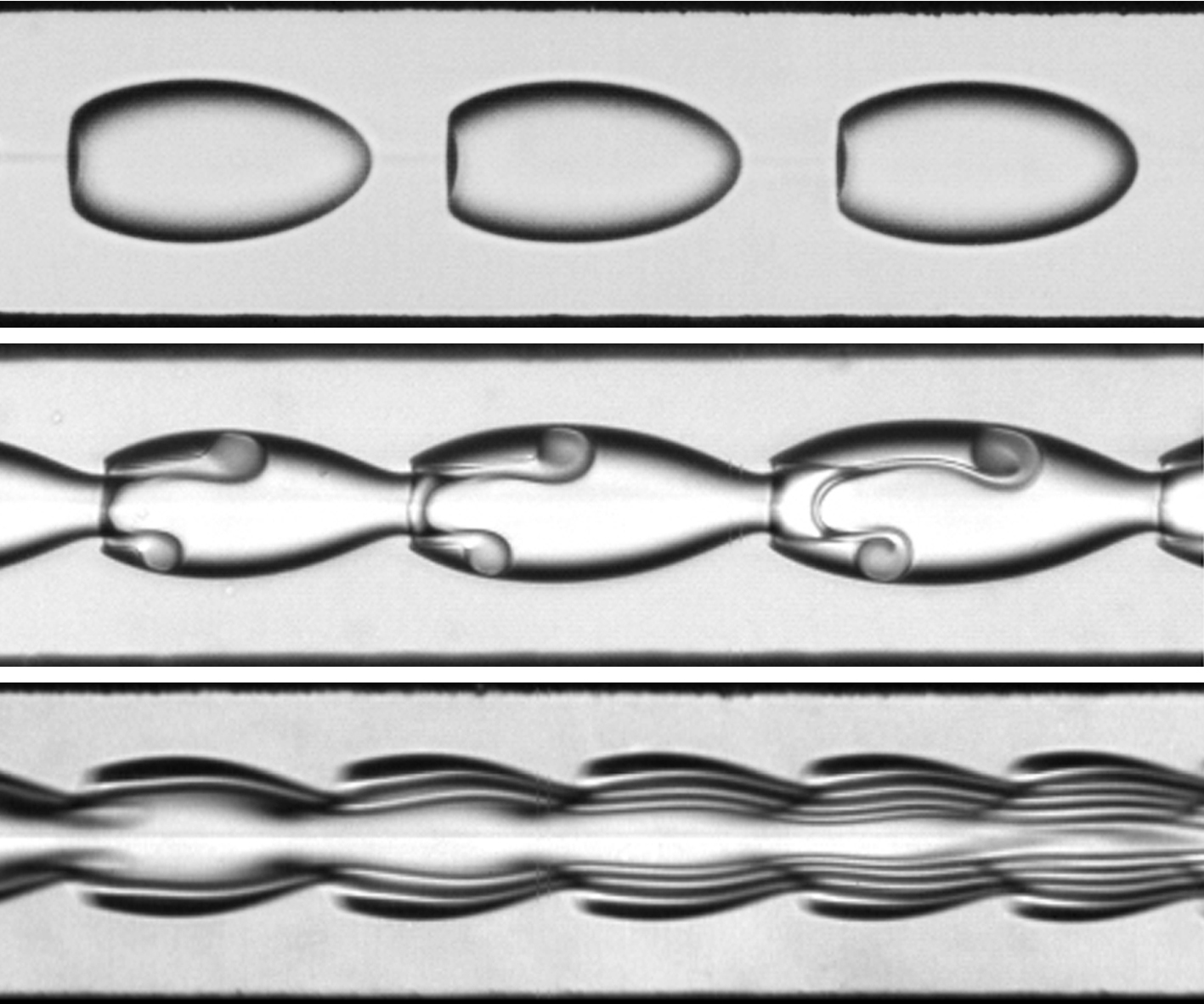 | Microfluidic Multiphase Flows Multiphase flows are encountered in a wide range of applications including chemical, petroleum, and power generation industries. Miniaturization of fluidic devices makes it possible to control fluids streams, droplets, and bubbles in a way that is unprecedented. The understanding of multiphase flow at the microscale not only provides fundamental scientific insights but also offers new functionalities for practical uses. |