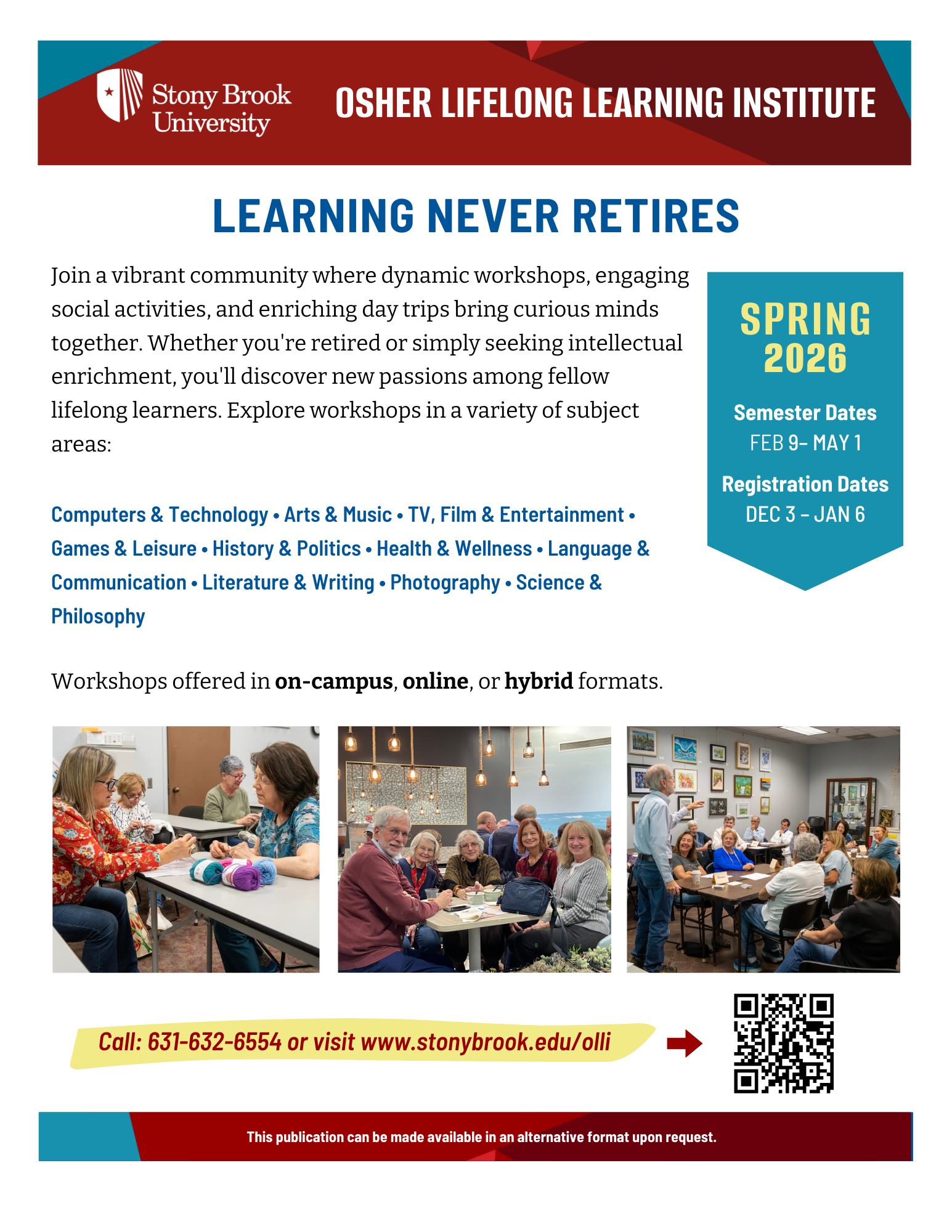 A quick view into the Osher Lifelong Learning Institute (OLLI) at Stony Brook University
