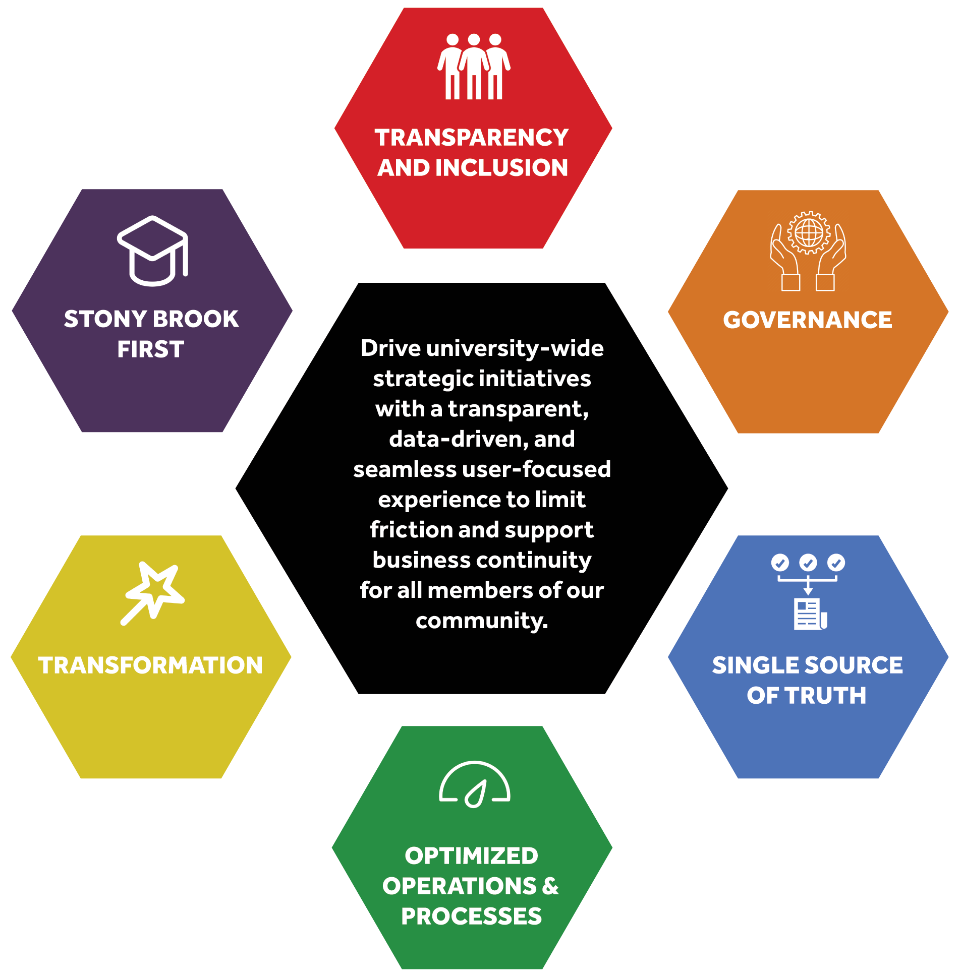 Stony Brook University will design and implement an enterprise wide, cloud-based ecosystem at SBU, supported by Oracle, to include several modules: Enterprise Resource Planning (ERP) which includes areas such as accounting, general ledger, fixed assets and revenue management, Enterprise Data Management (EDM), Enterprise Performance Management (EPM), and Human Capital Management (HCM). Upon completion of this project, we aim to realize these goals:Â