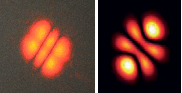 slightly changing the orientation of the output coupler mirror. The mode on the left