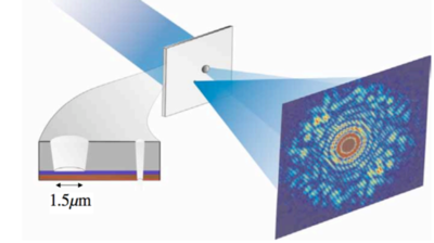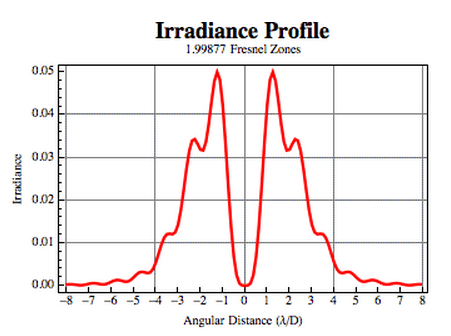 the Fresnel zone, ![]() I also looked at the book Optical Holography, which Dave Battin lent me. The book discusses using Fourier holography for pattern recognition. It was a little over my head, but I was able to find some of the papers the book referenced, which helped me understand the concepts better. I also downloaded Mathematica. I read a couple tutorials and played around with the coding for a single-slit workbook to familiarize myself some with Mathematica. July 18th, 2013On a whim, I deicided to look at Jenny Magnes' webpage today. I was surprised to find that many of the things she has been writing about on her blog mirror what I've been writing about in my journal, such as the phase problem, oversampling, and phase retrival. I talked to Marty more about the Lowell Wood paper he had sent me and Marty also showed me another paper on optical super-resolution, resolution better than conventional diffraction-limited resolution. They were able to achieve higher than average resolution using pupil-plane annular aperture filters [the middle of the beam is blocked out]. The annular aperture filters create a similar effect to the aperture functions created in the Lowell paper, but the aperture function doesn't create such an abrupt edge between the light and dark though. Marty mentioned that he thought you could create a better apodization effect from a single slit and after looking at the intensity distribution from a single slit using this application I would have to agree. Marty and I talked about the possibilty of creating an better apodization effect and then shining the beam at different object's to see how the diffraction pattern differs from if the object had been illuminated with a uniform beam. He gave me a book to learn more on the topic. Dave Battin also gave me a book to look at that talks about Fourier holography. I've written that you need both the phase and amplitude of a diffraction pattern to reconstruct the image that made it, but up until this point, I haven't been clear why. The answer is Babinet's principle, which states that the diffraction patterns of complementary diffractors are identical in the far-field. In more understandable terms, this means that an aperture and an opaque object of the same shape and size will have the same diffraction pattern. For example, both a circular aperture and opaque circle will form an Airy ring diffraction patterns.
