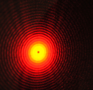 Airy ring patterns are made of a central bright circular region with a series of concentric dark and bright rings around it. Airy beams were named after George Biddel Airy; while he was not the first to observe the beams; he was the first to formulate a complete theoretical explanation of the beams. Airy beams are typically formed by uniformly illuminating a circular aperture; they can also be formed however by obstructing the middle of a beam with a circular object. This explains why Airy ring patterns were found in the scatter patterns formed by the Listeria species because the diameter of the Gaussian beam exceeds that of the colony, so that the colony acts as a circular obstruction. The portion of the beam that passes through the colony is attenuated (the intensity of the beam lessens), while the portion that does not pass through the colony is transmitted. This causes a phase- and amplitude- aperture effect producing an Airy ring pattern.