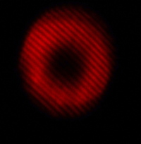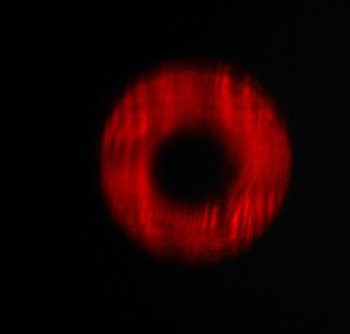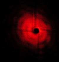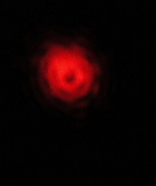![]() After I measured the diameter of the central disk of the Airy pattern, I set about mounting the single mode optical fiber to a translational stage and shone it through a 100 micron pinhole. It was very easy to reproduce the patterns that Will observed. I was also able to easily create "optical vortices" using the spiral phase plate.