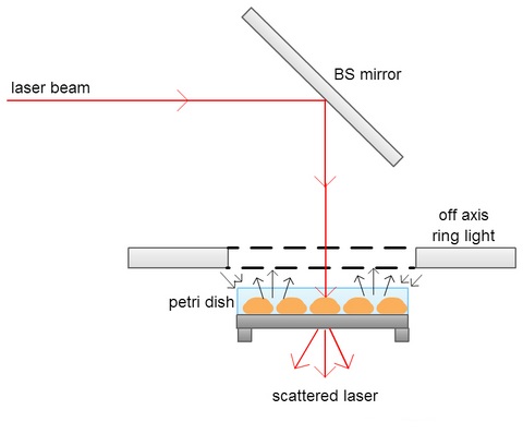 where where x_i,y_i are points in the image plane, sigma denotes the colony surface, t(x_a,y_a) is the 2-D transmission coefficient, E_1(x_a,y_a) is the 2-D incident Gaussian beam, phi(x_a,y_a) is the 2-D phase-modulation factor, r_ai is the distance from aperture plane to image plane, lamda is the wavelength and theta is the angle of r_ai to the optical axis. ELS equipmentThe equipment required to perform ELS microorganism identification has two main components: the plate reader and the forward scatterometer. The plate reader ascertains the spatial distribution of the colonies by measuring the light transmitted from an LED light. The location and individual characteristics of the colony can then be extracted from this data using image-processing algorithms. After the colonies have been located, the plate is then transferred to a forward scatterometer for laser probing [Past research has utilized a 635-nm with a 1/e^2 of 1mm laser beam]. The laser beam is sent through each colony and its associated scattering pattern is captured. There are two issues that need to be addressed solved before this system can be implemented: the number of colonies on a plate usually ranges from 50-200 and the scattering pattern is generated by comparing the relative position of the laser and the colony, therefore the circularly symmetric scattering pattern is optimized when the position of the center of the colony is close to the center of the laser beam. In order to be time- and energy-efficient with multiple colonies on one plate, a trajectory optimization technique must be employed to minimize the amount of time spent traveling between two colonies. In order to center the colony with the center of the laser, 2D centering can be performed by calculating the geometric centroid of a scattering pattern relative to the imaging frame. I was able to find a video online of a group that developed a mini ELS microorganism identification machine. The Final VerdictELS offers scientists a cost-effective, quick, and reliable method to identify pathogenic microorganisms. ELS is capable of identifying organisms without additional biochemical tests, which could reduce costs of identification. ELS is also faster than any other method on the market right now. There are still some mountains ELS needs to overcome. ELS only works for colonies that are close to transparent and approximately the size of the laser beam and for organisms that are culturable. At this point in time, research has only been done on bacteria. In order to maximize efficiency, databases of scattering patterns must be compiled. ELS has also come under fire because some argue that the differences between scattering patterns can be minute and indistinguishable. If I were to do a project where we used elastic light scattering to identify different microorganisms, it would probably only be practical for me to do it by identifying one colony at a time; this means no trajectory optimization technique. This could be possible by trapping a single cell or colony in an optical vortex and then imaging it. Figuring out how to match up the center of the laser and the colony could also prove a problem. References