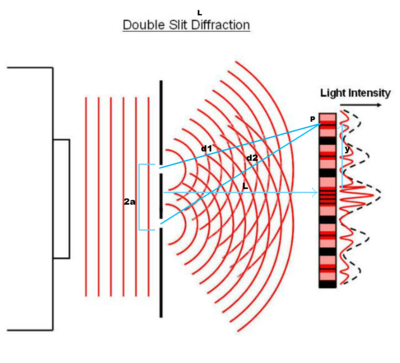 Phase modulation is a change in the phase of a wave. One of the many ways, the phase of a wave can be modulated is by traveling through a medium with internal density fluctuations. The radial spokes that appear in the scatter patterns of Listeria monocytogenes are believed to be caused by internal density fluctuations within the colony related to the multiplication and growth properties of the bacteria. ***I was able to find an earlier old paper [2006 vs 2007] by the same research group that had different optical reasoning about why certain patterns formed. I believe that the explanation I have above is a more accurate and correct optical description of why features within the scatter patterns formed, but I think it is important to know and understand different theories. They believe the Airy ring pattern was formed because the colony acted as a circular aperture [above version is much more plausible]; the dimmer rings were formed by the overall circular shape of the colony; the bright ring in the center was caused by two different effective focal lengths, result of radii of curvature and refractive index; and the radial spokes were sinc function intensity modulation in the azuthimal direction because of internal structures which were positioned in this direction (similar to the diffraction pattern from a plane wave on a rectangular aperture).*** Understanding colonies as a biological spatial light modulator Spatial light modulators, SLMs, are objects that modulate a beam in a spatially varying manner. Bacterial colonies, like SLMs, also vary the phase and amplitude of incident wavefronts sort of making bacterial colonies 'biological spatial light modulators'. The similarities between spatial light modulators and bacterial colonies have helped researchers gain an understanding of the way in which bacterial colonies modulate incoming light's phase and amplitude. Spatial light modulators use techniques like varying the refractive indices, thickness, and alignment of molecules to selectively modulate light; variations in many of the same properties are at play when bacterial colonies modulate light. Understanding the effect of changing certain properties in a spatial light modulator on the far-field diffraction pattern can help us understand what properties are causing the formation of certain features in bacterial colonies' scatter pattern. June 28th, 2013We started out the day talking about the double slit experiment. I have been working on understanding the Huygens-Fresnel equations, so Dr. Noé helped clarify some of the concepts. Dr. Noé had us create an equation for the amplitude and intensity of circular waves. Below, the first equation is for the amplitude of a planar wave and the second, a spherical wave.