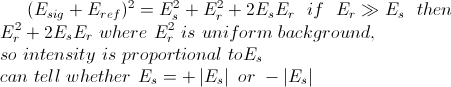 July 15th, 2013I looked over the paper about lenless imaging Dr. Noé, Melia, and I found on Wednesday some more over the weekend and it seems that the topic would make for a good research project. The authors of the paper not only describe the project they did in-depth [which they see as suitable for graduate or undergraduate students with some adjustments] and invite interested parties to contact them with any questions, but they also make some suggestions for related projects. The two ideas they suggest are skipping the reconstruction method and instead using a Fourier holography method to image the sample and collecting images of the sample from many different views, so that a 3D animation can be made. While the second idea sounds interesting, it may be to complicated to accomplish in a summer. The first suggestion on the other hand sounds interesting, accomplishable, and original [to the best of my knowledge]. The authors of the paper stumbled across the idea of using Fourier holography to image the sample by accident. When the authors looked at the Fourier transform of the diffraction pattern's measured intensities of an insect's wing, they noticed that there were three images of the wing: a central correlation of the specimen and two weaker images of the insect wing. ![]() The weaker, ghost images, are the result of interference between the scattered light from the wing and a small additional scatterer unintentionally in the field of view. The small scatterer allows for Fourier holography method to be used. Holograms are patterns of interference fringes, which encode the interactions between two coherent beams. In the Fourier holography method, when the fairly coherent wavefront of the scattered light from the small scatterer interferes with the arbitrary wavefront scattered from the sample, electric field information, including amplitude and phase, can be found. This method solves the phase-problem through the use of a reference "aperture" next to the sample, the interactions between the waves diffracting from each source is recorded and the phase can be recovered from it. This information can be used to reconstruct the sample. After talking to Melia and doing some research online, it seems that ImageJ would work well for a project like this because it is able to compute the Fourier transform and subtract the background from an image. I also found a couple of resources today, which I think should help me understand the optics behind this project.