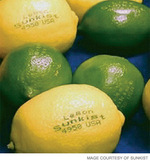 Laser Labels for Fruits and Vegetables The current method for tracking and identifying tainted fruits and vegetables is to use stickers. Stickers pose a problem though because they can fall off and can leave a sticky residue on the outside of the produce. Lasers hold the answer. Physicists have created a system which labels produce using an infrared laser to label onto produce its variety, price code, and where it was grown. The whole process only takes about 25 milliseconds and has proven safe. Sunkist is one of the first companies to adopt this new technology, purchasing the rights to it for their citrus products.