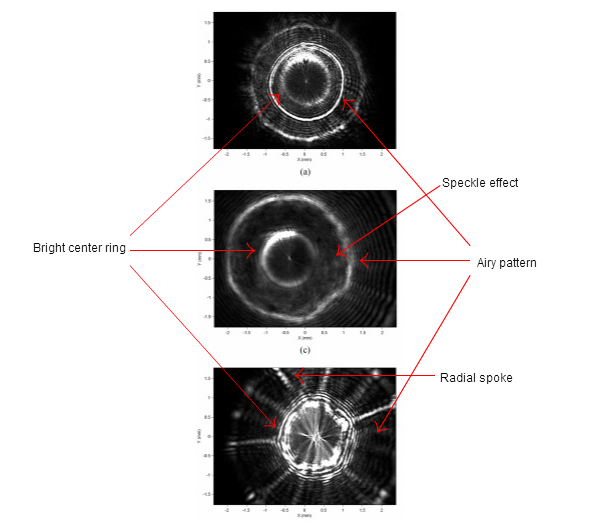 July 1st, 2013The first day of July, hooray! Today, I am going to focus on the optical phenomenon at play in creating scatter patterns. One study found the scattering patterns of three Listeria species to be composed of Airy ring patterns, secondary bright rings in the middle of the diffraction patterns, random speckle effects, and radial spokes. All of these features can be explained using optics.