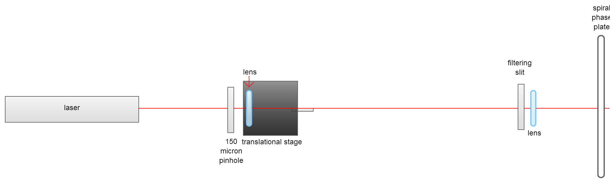 Research JournalSUMMER 2013August 16th, 2013It's hard to believe that it's already the end of the summer. I don't know what I'm going to do with myself when I'm not spending most of my day in the lab. This summer has been an fantastic experience that I hope to repeat in future summers. I can't thank the Dr. Noé, Marty, Melia, Hal, and Dave enough for encouraging, helping, and pushing me thorough out the course of the summer. I had a great time and I learned a lot as well. When I come back for the fall semester [a little over a week from now], I would like to 1) model the Fresnel diffraction from the pinhole, the diffraction from the filtering slit ilumminated by the Fresnel diffraction pattern from the laser and single mode fiber, and the light as it passes through the spiral phase plate; 2) profile the diffraction pattern from the filtering slit and the beam after it passes through the spiral phase plate in the far field; and 3) study the diffraction pattern that results when the Fresnel diffraction pattern from the single mode fiber passes through a circular aperture. See ya soon! August 15th, 2013I realized yesterday that the experimental diameter of the Airy diffraction pattern central disk I had measured when testing for super resolution was incorrect. I thought the diameter I had measured was approximately 0.21 mm, but it was actually around 1.02 mm. This would make the experimental diameter of the Airy central disk almost four times as large as the theoretical diamter. This seemed improbable, so I looked over our math again and I think I found the source of error. I'll explain our calculations before I go into why I think they were wrong.