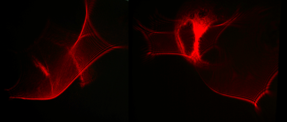 Fig. 9 – The left image shows the beam from the laser hitting the bottom of the