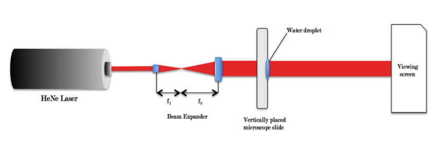 A microscope slide was placed vertically for the far field viewing method. A Pipette was used to place a water droplet close to 6mm in