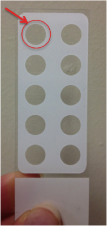diameter onto dirty slide with 6mm pre-made circular hole outlines about