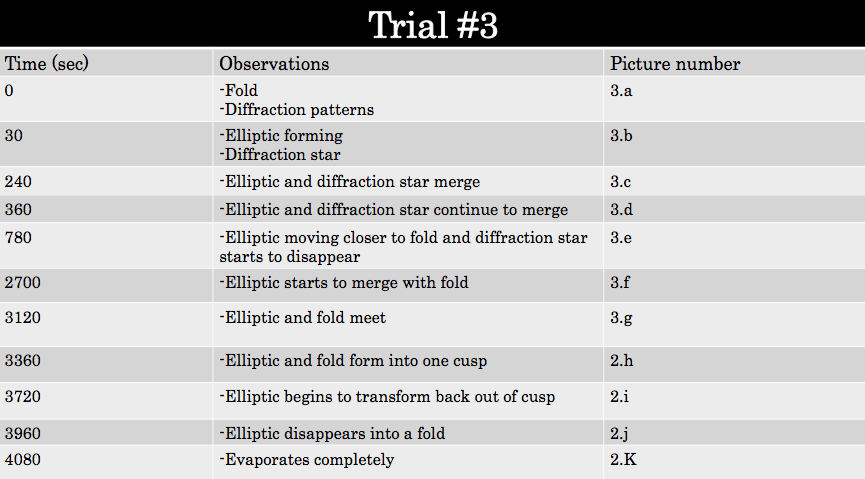 larger than the others. The second trial droplet was the smallest of the three and the third trail’s