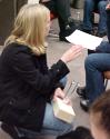 | At our fourth and last regular meeting today we played with some new toys that demonstrate things about waves and then wrote up an outline for our presentation. As last time, our mentor was Liz Roberts, who is a freshman physics & music student from the Stony Brook college WISE program. |