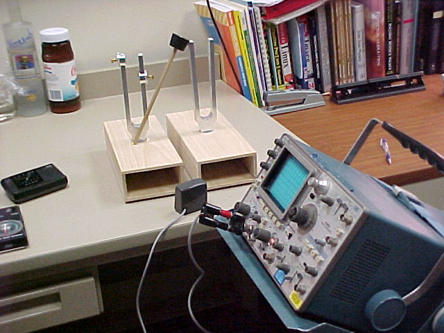 These are the tuning forks and the oscilloscope that we used.