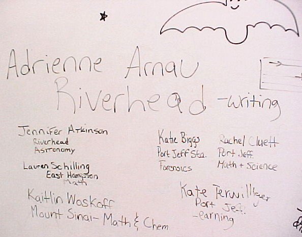 Kaylin Hessler, who is attending our group, meets Azure Hansen, a Stony Brook physics student, on Open House Day.