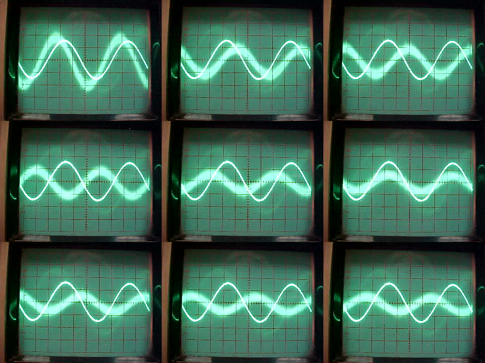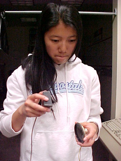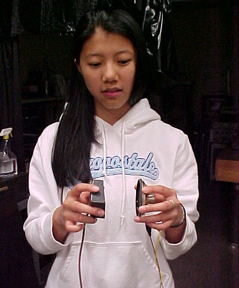 The Reason for Picking This Topic for My ProjectIt all started on a Saturday night, around 10 PM in my dorm room. My suitemate threw a birthday party for one of her friends. Of course, when there is a party, there is music and laughter. As I was in my room all these sounds were just noises to me. That's when I remembered one of Dr. Noe's many demonstrations: the tuning forks. Since the tuning forks were set at different frequencies, the sound waves from the tuning forks comes in and out of phase and where destructive interference occurs the sound is cancelled out. So I wondered if it was possible for me to build a device that cancels out noise. After reading my email of my idea for the project, Dr. Noe mentioned the term ``noise cancellation device,'' and asked me to search for any information about it online. I immediately found a website with instructions on how to build noise-canceling headphones. This was the same site Dr. Noe had also found! Background Information on InterferenceWhen two waves overlap, the combined intensity can either increase or decrease because of interference. Constructive interference occurs when waves of equal frequency are in phase. As a result of constructive interference the amplitude of the waves can add up. Destructive interference occurs when waves of equal frequency and amplitude are completely out of phase; then the waves cancel each other out. These two pictures show waves completely in phase and completely out of phase. An interesting phenomenon that demonstrates constructive and destructive interference is the colors in soap films. As discussed in Eric Tompkins' report, when a soap film is held at almost a vertical position for several minutes, a white band and a black band forms at the top of the soap film. This effect is caused by interference of light reflecting off of two nearby surfaces: the outer surface and the inner surface of the soap film. Gravity causes the film to become ``wedge-shaped," in other words, thinner at the top. When the film becomes less than 10 nm thick then the phase change due to its thickness becomes insignificant, and the only phase change that remains is the 180 degree shift at the front surface. As a result, there is complete destructive interference of the two light waves and the surface looks black. When the thickness of film is around 100 nm, the additional phase shift due to the thickness creates constructive interference. As a result, all the colors reach a maximum intensity together, which explains the white band. Noise Canceling HeadphonesAs I had mentioned before destructive interference is the basis of noise cancellation devices. One of those devices is a noise-canceling headphone. It has built-in microphones on the outside of each ear piece. The microphones detect noise then change it to an electrical signal that is out of phase with the actual noise. Therefore the sound you hear from the headphone is exactly out of phase with the actual sound, and together, there is silence. However in reality the distance that the sound wave travels also affects the phase of the sound wave. That is why the noise canceling headphone works well with low frequency noise but not at high frequency. A Visual Demonstration of Phase ShiftsWith Dr. Noe's help and his trusty oscilloscope I was able to get a visual picture of what really is happening. We worked with an oscillator, a small speaker, a microphone and of course an oscilloscope. An oscillator is an electronic device that generates signals. By connecting the oscillator to a speaker, we're able to generate sound and also the oscillator allows us to set the frequency and amplitude that we want. An oscilloscope is a graph-displaying device; it basically draws the graph of an electrical signal. To demonstrate this concept of shift in phase of a sound wave with increasing distance we connected the oscillator to one channel of the oscilloscope and also to the loud speaker. The other channel of the oscilloscope was connected to the microphone. Then we watched the change in the oscilloscope display as we moved the microphone away from the speaker. As the distance between the speaker and microphone increased the curve created by the microphone (the fuzzy one) moved to the right and got lower. The curve shifts to the right because it takes a longer time for the sound to reach the microphone, and it gets lower because the sound gets weaker when the microphone is further away. The nine pictures were taken over 3-4 seconds while the microphone was moving away from the speaker at a steady rate.