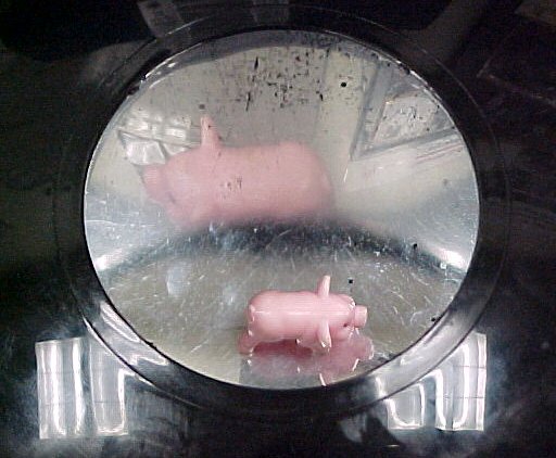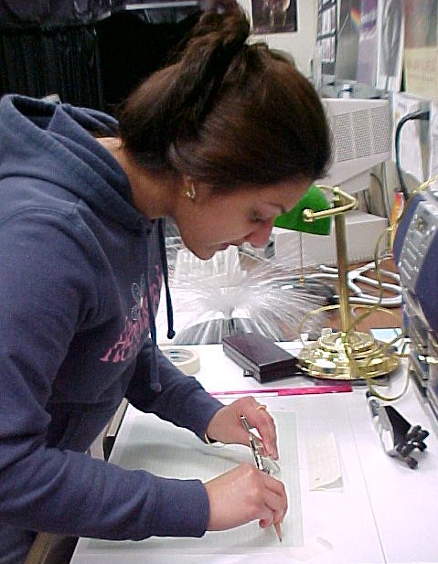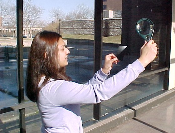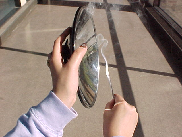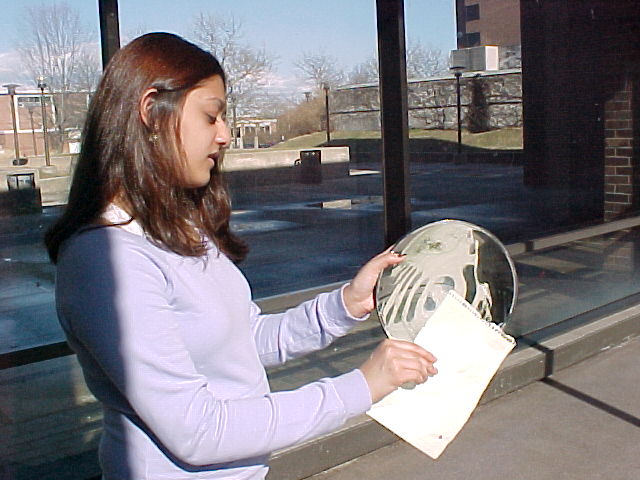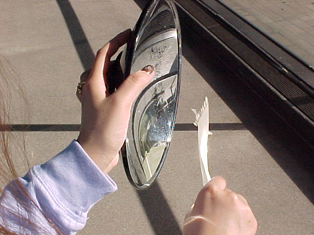 | This plot shows the locations of all images predicted by matrix analysis with the Mathematica program as a function of the mirror separation d in units of the focal length f. The observed images are connected by a dashed line. |